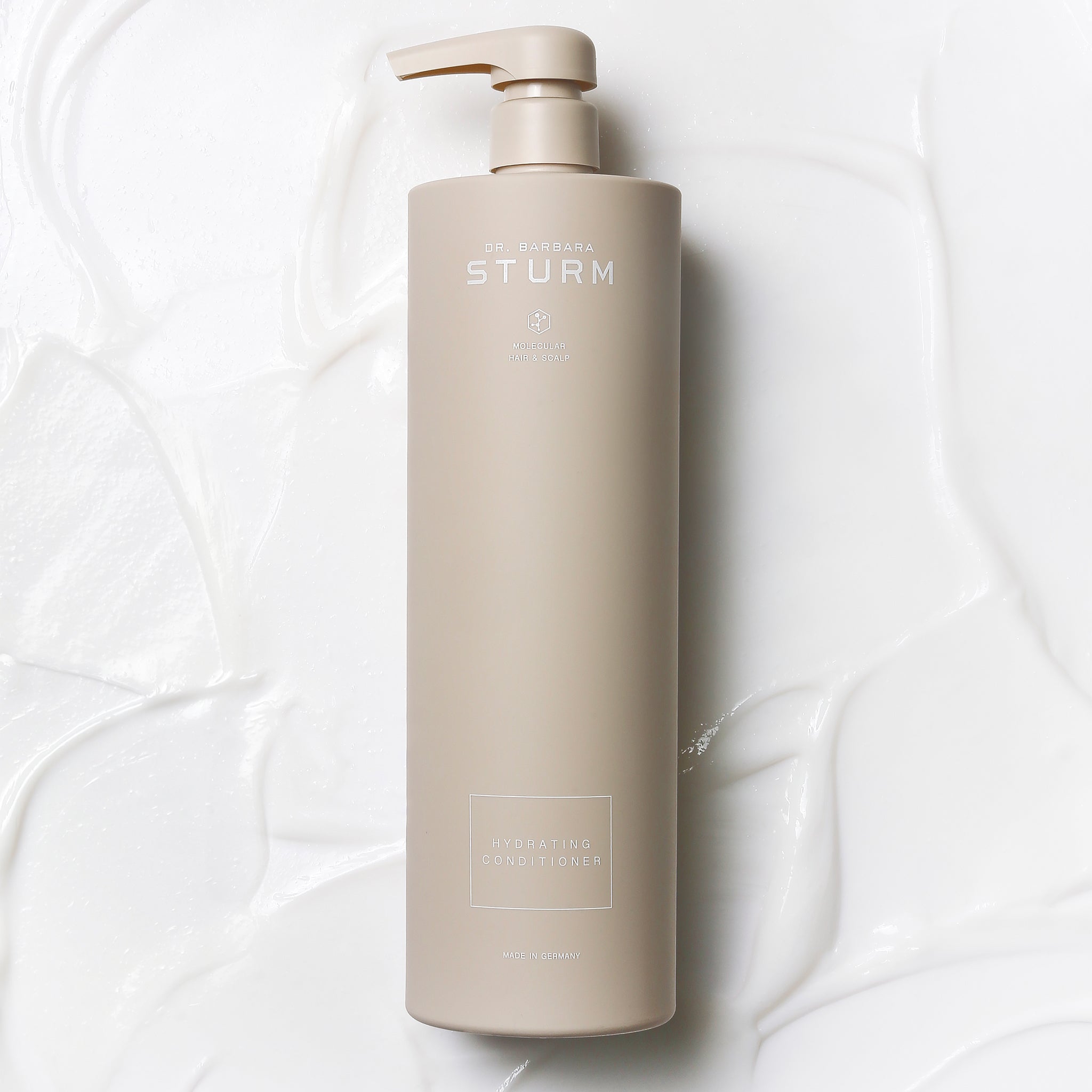 Dr. Sturm's innovative Hydrating Conditioner is an intensive conditioner for normal, stressed and damaged hair. Cationic Hyaluronic Acid and organic Shea Butter are absorbed deeply into the hair fibres to provide long lasting softness, suppleness and shine for instantly manageable hair. Pro-Vitamin B5 smooths the hair’s outer layer without weighing it down, reduces frizz and gives dull hair volume, fullness and vitality. Sunflower Sprouts Extract and Tara Extract protect against heat, impurities, UV stress and color fade. The result is strengthened, healthy hair with a silky, soft shine.