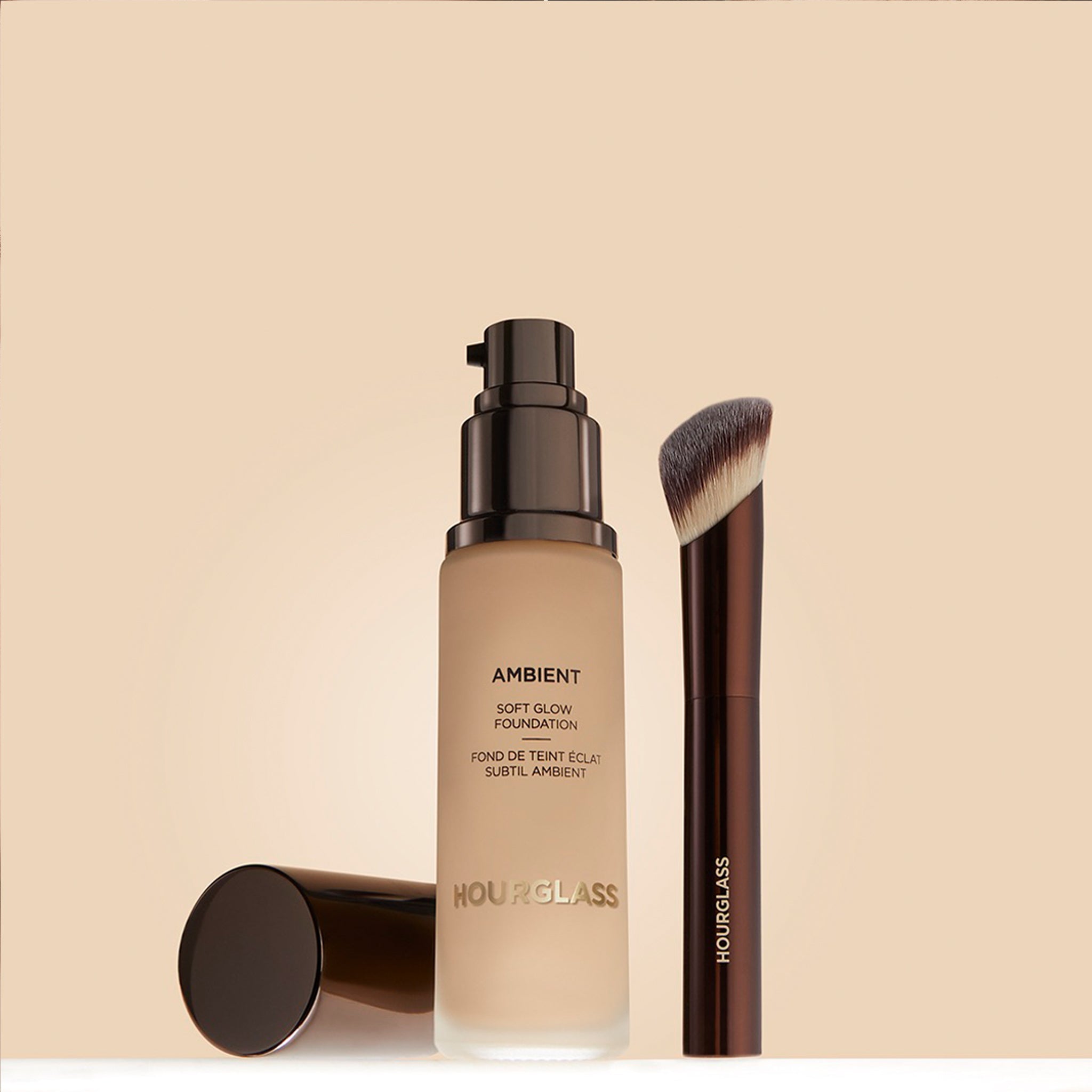 Prep skin with a moisturizer & primer, apply a pea-sized amount of foundation to the center of the face and blend outward using the Ambient Soft Glow Foundation Brush. Gently buff into skin and build until desired level of coverage is achieved