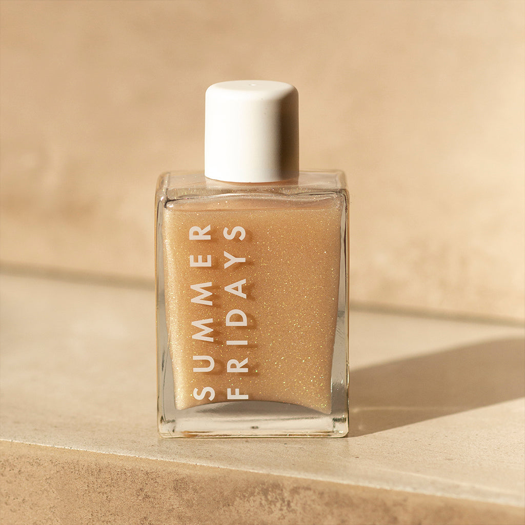 Its nourishing blend of macadamia, jojoba, apricot kernel and sunflower oils help to deliver long-lasting hydration, while ultra-fine minerals glisten on the skin for a light, sunkissed glow.